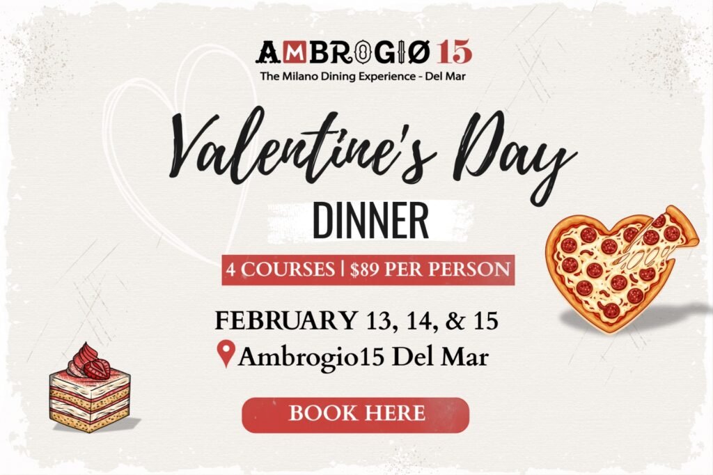 Located inside the Skydeck in Del Mar Highlands Town, Ambrogio15 Del Mar is an Italian hotspot that offers modern Italian cuisine in partnership with Michelin Start Chef Silvio Salmoiraghi from Ristorante Acquerello in Milano, Italy.